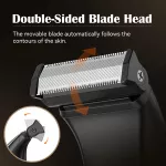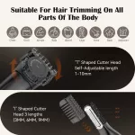 This trimmer is engineered for performance, comfort, and versatility:- Double-Sided Blades: T-shaped head for full-body grooming and an I-shaped head for sensitive areas like the groin, armpits, and inner thighs.