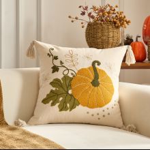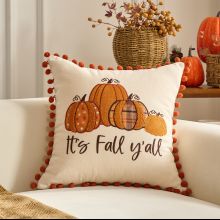Use our battle tested marketing materials for Fall Pumpkin Embroidered Cushion Cover with Pompom Fringe – 18x18 / 12x20 in