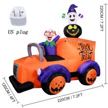 Make your home the talk of the neighborhood this Halloween with this 8FT Inflatable Clown Truck Decoration. Featuring a creepy clown behind the wheel, a skeleton passenger, and a grinning pumpkin, this inflatable sets the perfect haunted scene for trick-or-treaters and party guests alike. Built-in LED lights bring the display to life after dark, creating a glowing centerpiece that’s both spooky and fun. At an impressive 8 feet long, it’s sure to stand out and draw attention from every passerby.