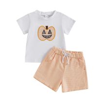 Dress your baby boy in the perfect blend of festive fun and everyday comfort with this 2-piece Halloween outfit set. Featuring a soft short-sleeve T-shirt with a playful pumpkin print and matching elastic plaid shorts, this set is made for making memories. Whether it’s for a Halloween party, a family photo, or just a day of fun, your little pumpkin will look absolutely adorable.Product Features