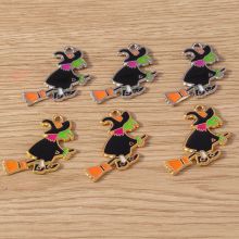 Bring a touch of Halloween magic to your creations with these 10pcs enamel witch charms. Designed with a charming cartoon style, each pendant measures approximately 1.1 x 1.25 inches (28 x 32 mm), making them the perfect size for necklaces, earrings, bracelets, keychains, and more. Crafted from durable metal with a glossy enamel finish, these pendants are both eye-catching and long-lasting. Whether you’re designing jewelry for the spooky season or adding a playful twist to your year-round accessories, these witch charms will elevate your craft projects instantly.Key Features
