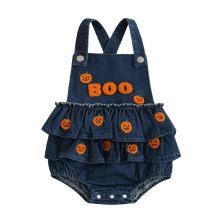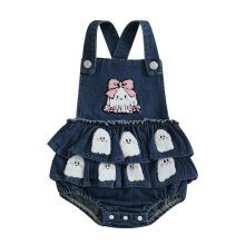 Use our battle tested marketing materials for Newborn Baby Girl Halloween Denim Romper with Pumpkin and Ghost Embroidery - Ruffled Overalls Jumpsuit