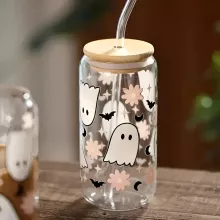 Use our battle tested marketing materials for Halloween Glass Cup with Lid and Straw 18.7oz – Cute Ghost Design