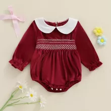 Use our battle tested marketing materials for Baby Girls Velvet Romper with Doll Collar & Embroidery
