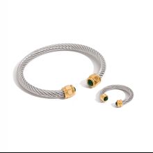 Use our battle tested marketing materials for Minimalist Malachite Open Ring Bracelet in 18K Gold-Plated Stainless Steel
