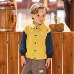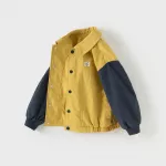 Keep your little one cozy and confident in this heavyweight patchwork jacket, designed to handle the chill of cooler days. Crafted with durable polyester and a soft satin finish, this coat combines everyday comfort with a fashionable edge. The turn-down collar and classic single-breasted closure give it a timeless look, while the patchwork design adds a playful, modern twist that boys love.Key Features