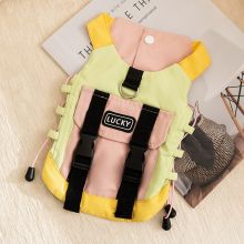 - Design: Open-buckle two-legged vest with cute backpack detail