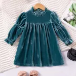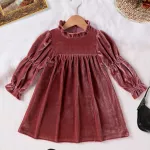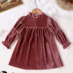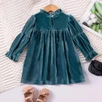 Dress your little one in charm and comfort with this adorable long sleeve velvet dress. Designed for girls ages 1-5 years, it blends playful elegance with everyday practicality. The ruffled round-neck and puff-sleeve design add a sweet and fashionable touch, while the gathered waistline creates a flattering silhouette that looks beautiful on every child.Soft, Cozy, and Perfect for the Season
