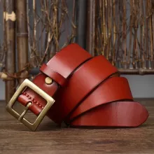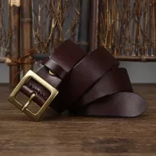 Men’s Genuine Leather Belt with Solid Brass Buckle – 1.5 Inch Wide