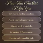 This checklist is perfect for anyone just starting their fitness journey or restarting after a break. If you want a guide that feels approachable, motivating, and doable—without the stress—this is it. Unlike other resources that overload you with information, this one focuses on making progress feel achievable and enjoyable.Take the First Step Today