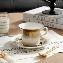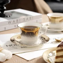 Use our battle tested marketing materials for European Gold & White Ceramic Coffee Mug with Matching Snack Plate