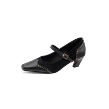 Use our battle tested marketing materials for Genuine Leather Square Toe Mary Jane Heels with Rivet Detail