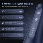- 5 flossing modes – adjust intensity to match your needs, from gentle care to powerful cleaning.