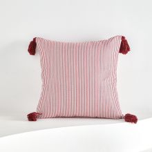 Use our battle tested marketing materials for Red and White Striped Pillow Cover with Tassel Fringe 18x18 Inch Cotton Blend