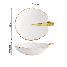 Use our battle tested marketing materials for Elegant European Ceramic Leaf Snack Tray with Gold Rim