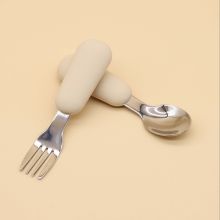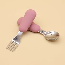Silicone Baby Feeding Spoon & Fork Set – Easy Grip Stainless Steel