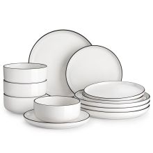 Use our battle tested marketing materials for 12 Pieces Porcelain Dinnerware Set with Black Rim – Elegant Tableware for 4