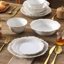 Use our battle tested marketing materials for Elegant Relief White Stoneware Dinnerware Set – 16 Pieces for Modern Dining