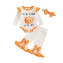Use our battle tested marketing materials for Baby Girl Cute Pumpkin Outfit 3-Piece Set with Romper, Flare Pants & Bow
