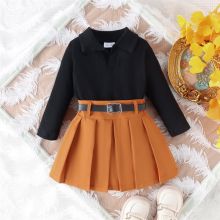 Use our battle tested marketing materials for Kids Fall Outfit Long Sleeve Top with Pleated Skirt & Belt Set