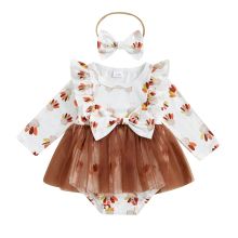 Use our battle tested marketing materials for Baby Girl Thanksgiving Turkey Print Romper Dress with Headband
