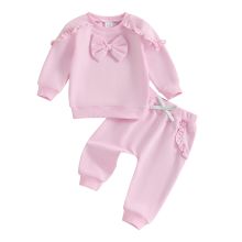 Use our battle tested marketing materials for Little Girls 2PCS Ruffle Bow Long Sleeve Top and Drawstring Pants Outfit Set