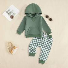 Use our battle tested marketing materials for Boys Winter Hooded Set – Solid Color Top & Checkerboard Pants Two-Piece Outfit
