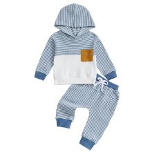 Use our battle tested marketing materials for Cozy Stripe Patchwork Fall Outfit for Toddler Boys - Hoodie & Pants Set