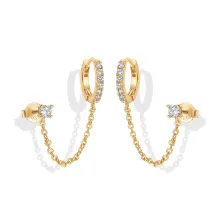 Use our battle tested marketing materials for 14K Gold Plated Double Piercing Chain Huggie Hoop Earrings with CZ Stud