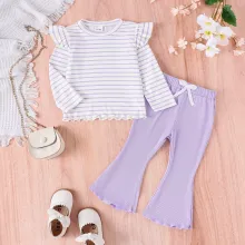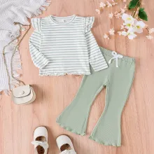 Use our battle tested marketing materials for Toddler Girls Striped Lacy Ruffle Top & Flared Pants Outfit Set