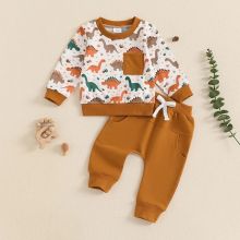 Let your baby boy roar with joy in this Dinosaur Print Sweatshirt and Sweatpants Set! Designed for comfort, cuteness, and easy dressing, this two-piece outfit is the perfect choice for autumn and everyday play. Made from a soft, stretchy blend of 95% polyester and 5% elastane, it offers a gentle feel against delicate skin while keeping your little one cozy all day long. The crew neck sweatshirt features a fun dinosaur print that sparks imagination, paired with elastic-waist sweatpants for a snug, flexible fit. Whether it’s tummy time, outdoor adventures, or a cozy day at home, this outfit keeps him comfy and looking adorable.Product Features