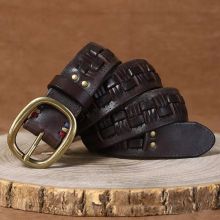 Use our battle tested marketing materials for 3.8CM Braided Leather Belt for Men with Copper Buckle - Stylish Woven Jeans Belt