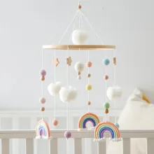 Use our battle tested marketing materials for Wooden Baby Crib Mobile Rattle Toy with Boho Rainbow and Musical Bear