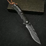 The VG10 Damascus blade offers an incredibly sharp edge and long-lasting performance that resists corrosion and wear. With a hardness of 60-61 HRC, it provides superb strength for heavy-duty tasks such as slicing, cutting, and carving, while remaining easy to maintain. The beautiful Damascus pattern not only adds to the knife's aesthetics but also highlights its top-tier craftsmanship. Designed with precision and reliability in mind, this folding knife features a smooth flipping mechanism that allows for quick one-handed deployment. Its compact size makes it an ideal choice for EDC (Everyday Carry), easily fitting in your pocket or pack without taking up too much space. The ergonomic hand-carved ebony handle ensures a comfortable grip during extended use, providing control and stability in challenging environments.Why Choose the VG10 Damascus Flipper Pocket Folding Knife?