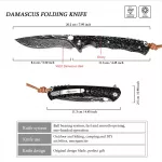 Meet the ultimate companion for your outdoor adventures: the VG10 Damascus Flipper Pocket Folding Knife. Expertly designed with a premium VG10 Damascus steel blade, this tactical tool is built to provide exceptional performance in every situation. Whether you’re camping, hiking, or hunting, this pocket knife delivers the strength, durability, and sharpness you need to get the job done.Basic Features: