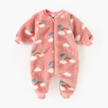 Use our battle tested marketing materials for Baby Fleece Lined Romper with Rainbow Cloud Print