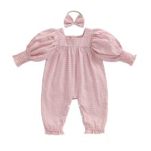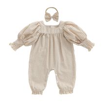 Use our battle tested marketing materials for Baby Girls Plaid Fall Romper with Long Sleeves and Bow Headband