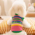 Keep your furry friend warm and stylish this season with our Colorful Striped Dog Sweater. Designed especially for small breeds like Maltese, Bichon Frise, and Teddy dogs, this knit pullover combines comfort, warmth, and vibrant charm. The sleeveless design makes it easy to slip on and off, while the soft polyester fiber ensures your pet stays snug without feeling restricted.Perfect for Cold Weather Adventures