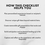 This checklist is perfect for anyone who wants to gift a unique and memorable experience. Whether you're looking for an anniversary gift, a birthday surprise, or a thoughtful gesture just because, this guide will help you elevate your gift-giving. Ideal for people who are tired of giving generic presents and want to give something that creates real moments of joy and connection.Why This Guide Is Different