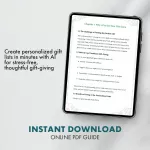Are you tired of spending hours searching for the perfect gift? Do you wish there was an easier way to create personalized gift lists that truly reflect the interests and tastes of your loved ones? Look no further! "Using AI to Create Personalized Gift Lists in Minutes" is a comprehensive digital guide that teaches you how to harness the power of artificial intelligence to create thoughtful and customized gift lists quickly and effortlessly. Whether you're buying for family, friends, or colleagues, this guide will revolutionize your gift-giving process.Key Features and Contents of This Digital Guide: