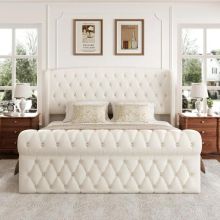 Use our battle tested marketing materials for Luxurious King Size Platform Bed Frame with Upholstered Headboard