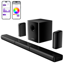 99.99% audio detail for lifelike, multidimensional sound. The system combines five front channels, two surround speakers, and a 6.5-inch wireless subwoofer to create an authentic 7.1 experience. Whether you’re watching a movie, playing an intense game, or listening to live music, every sound moves naturally around you for a completely engaging experience.