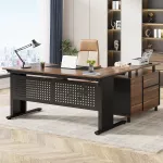 This executive desk comes with a file cabinet, drawer, and open storage shelves that make organization effortless. The file drawer fits both letter and A4 documents, keeping important papers safe and easy to access. Smaller drawers and open shelves are perfect for your office supplies, books, and décor, helping you maintain a clean and professional workspace.Spacious and Comfortable Design