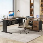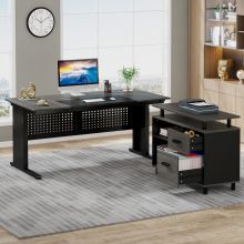 Upgrade your office with this 63-inch L-shaped executive desk that blends sophistication, durability, and smart design. With a spacious layout and built-in storage options, it’s crafted to keep your workspace clutter-free and your productivity at its peak. Whether you’re working from home, managing business tasks, or gaming, this all-in-one desk offers everything you need for a well-organized and inspiring work environment.All-in-One Workstation for Ultimate Efficiency