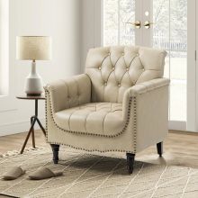 Use our battle tested marketing materials for Modern Faux Leather Accent Chair with Wood Legs & Nailhead Trim
