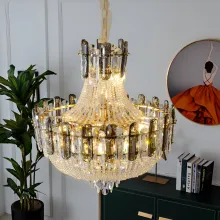 Use our battle tested marketing materials for Elegant Crystal LED Ceiling Chandelier – Amber & Smoky Grey Luxury Light