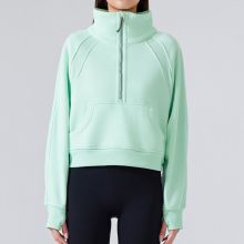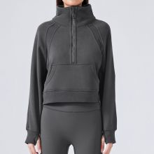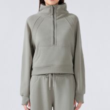 Womens Fleece Lined Half Zip Winter Pullover with Thumbholes and Pocket