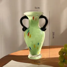 Use our battle tested marketing materials for Retro Green Glass Flower Vase – Elegant French Style Home Décor Accent
