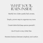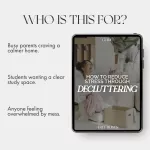 This guide is ideal for anyone feeling anxious, overwhelmed, or stuck due to a cluttered home or workspace. It’s especially helpful for those who want to combine mindfulness with practical, sustainable organization strategies. If you’ve ever wondered exactly how to reduce stress by decluttering in a way that truly lasts—this digital guide was made for you.