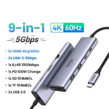 - 9-in-1 Docking Station: Combines HDMI, USB-A, USB-C, Gigabit Ethernet, and card reader functionality in one compact device.